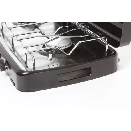 Fornello a gas a 2 fuochi con bruciatori regolabili.