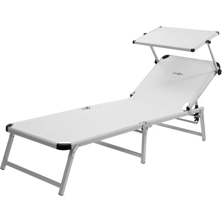 Lettino da sole con struttura quadrangolare a tre piedi.